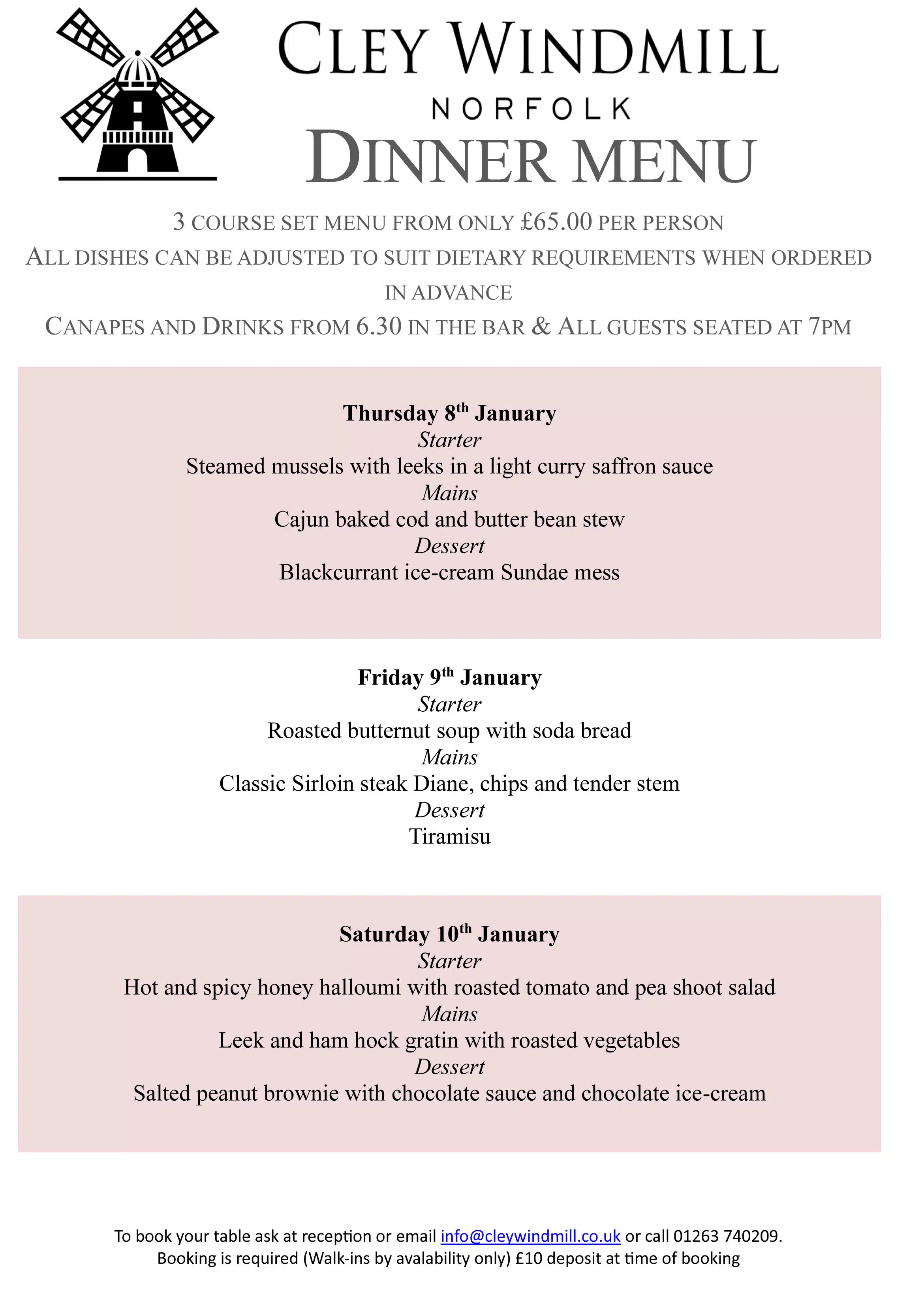 We are very aware that food allergies and intolerances can be both life-threatening and cause pain and misery to you and your guests. All our staff undertake the governments food allergy training, and every effort is made to ensure your visit to Cley Windmill is safe and enjoyable.